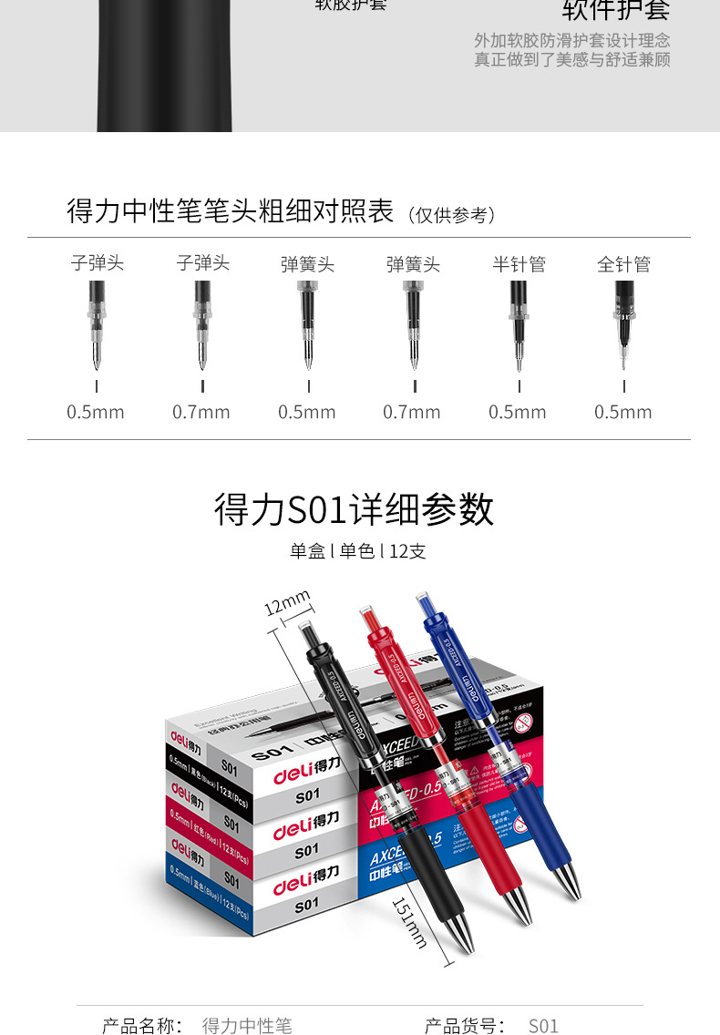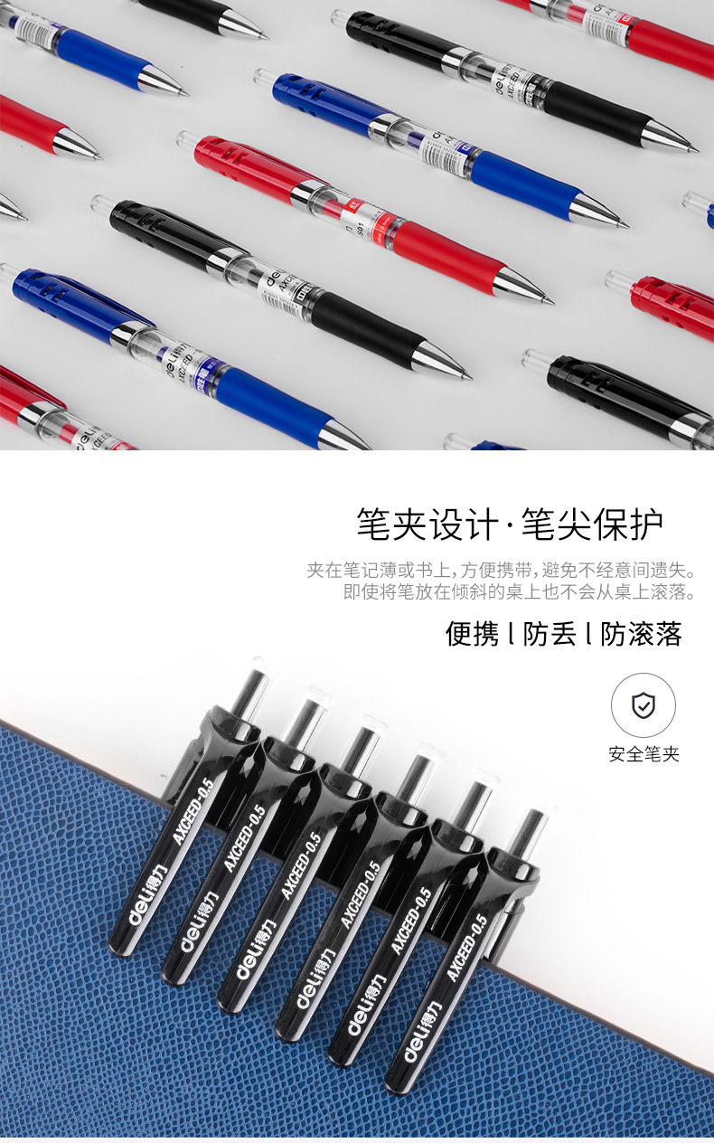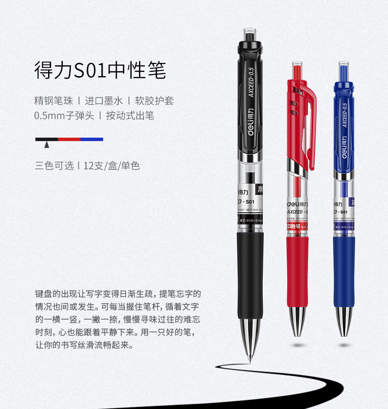 得力S01按動(dòng)式中性筆0.5mm-紅色黑色藍(lán)色中性筆